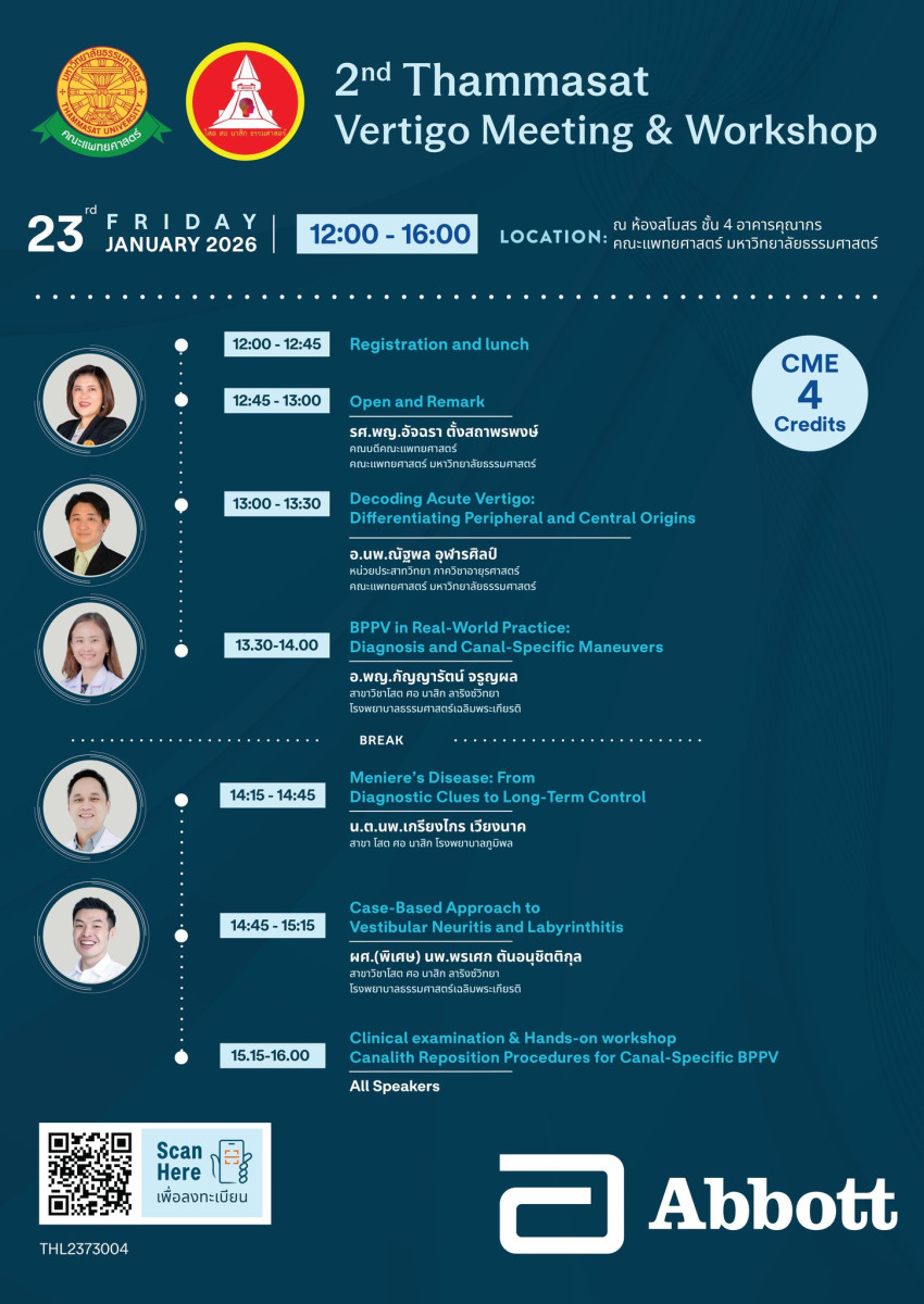 การประชุมเชิงวิชาการ “2nd Thammasat Vertigo Meeting & Workshop” (CME 4 Credits)