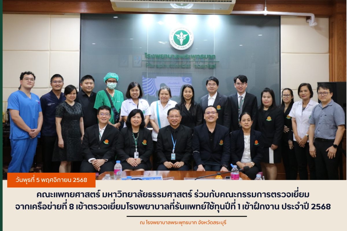 2025-11-12 14:29:462025-11-12 14:34:15คณะแพทยศาสตร์ มหาวิทยาลัยธรรมศาสตร์ พร้อมด้วยคณะอนุกรรมการตรวจเยี่ยม และประเมินสถาบันฝึกปฏิบัติงานแพทย์เพิ่มพูนทักษะ เครือข่ายที่ 8