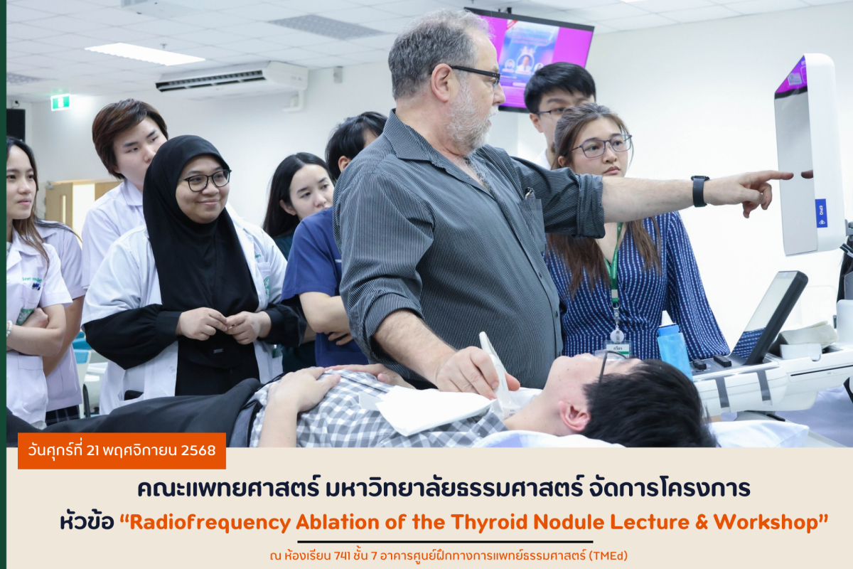 2025-11-27 09:32:592025-11-27 09:32:59คณะแพทยศาสตร์ มหาวิทยาลัยธรรมศาสตร์ จัดการบรรยายเชิงวิชาการใน หัวข้อ “Radiofrequency Ablation of the Thyroid Nodule Lecture & Workshop”