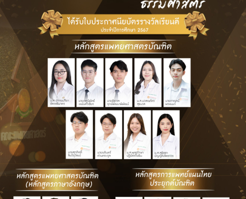 ขอแสดงความยินดีอย่างยิ่งแก่ นักศึกษาแพทย์ผู้ได้รับรางวัล “เรียนดี ประจำปีการศึกษา 2567”