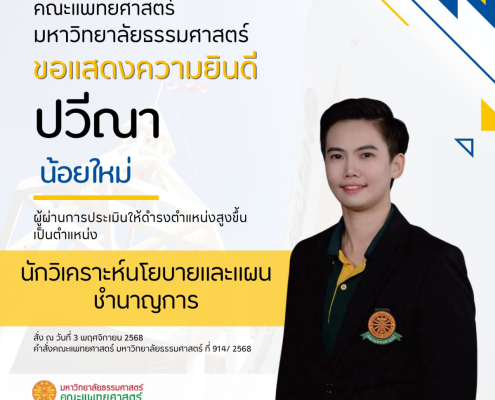 คณะแพทยศาสตร์ มหาวิทยาลัยธรรมศาสตร์ขอแสดงความยินดีกับ…