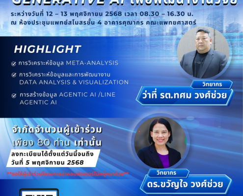 โครงการอบรบเชิงปฏิบัติการ Generative AI เพื่อพัฒนางานวิจัย วันที่ 12-13 พฤศจิกายน 2568