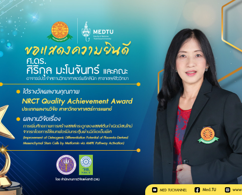 ขอแสดงความยินดีกับ ศ.ดร.ศิริกุล มะโนจันทร์ อาจารย์ประจำสถานวิทยาศาสตร์พรีคลินิก สาขาเซลล์ชีววิทยา . ได้รางวัลผลงานคุณภาพ NRCT Quality Achievement Award ประจำปีงบประมาณ 2569 จากสำนักงานการวิจัยแห่งชาติ (วช.) ประเภทผลงานวิจัย สาขาวิทยาศาสตร์การแพทย์