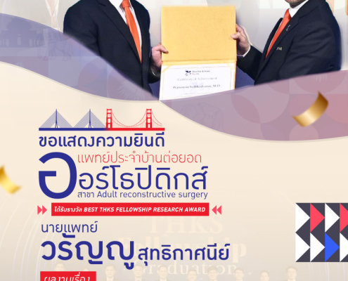 นายแพทย์วรัญญู สุทธิกาศนีย์ แพทย์ประจำบ้านต่อยอด ภาควิชาออร์โธปิดิกส์ ได้รับรางวัล BEST THKS FELLOWSHIP RESEARCH AWARD