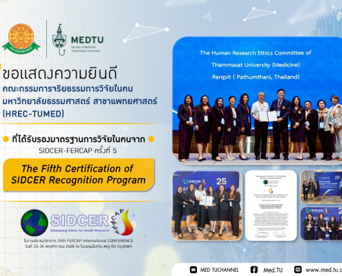 คณะแพทยศาสตร์ มหาวิทยาลัยธรรมศาสตร์ ขอแสดงความยินดีกับ คณะกรรมการจริยธรรมการวิจัยในคน มหาวิทยาลัยธรรมศาสตร์ สาขาแพทยศาสตร์ (HREC-TUMED)