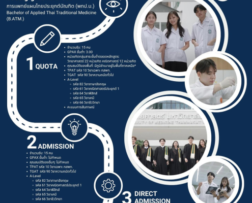 เปิดรับสมัครนักศึกษาระดับปริญญาตรี ปีการศึกษา 2569 หลักสูตรการแพทย์แผนไทยประยุกต์บัณฑิต (ศูนย์ลำปาง) Applied Thai Traditional Medicine (Lampang campus)