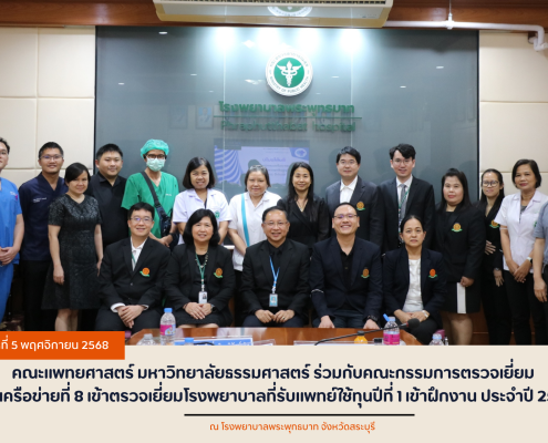 คณะแพทยศาสตร์ มหาวิทยาลัยธรรมศาสตร์ พร้อมด้วยคณะอนุกรรมการตรวจเยี่ยม และประเมินสถาบันฝึกปฏิบัติงานแพทย์เพิ่มพูนทักษะ เครือข่ายที่ 8