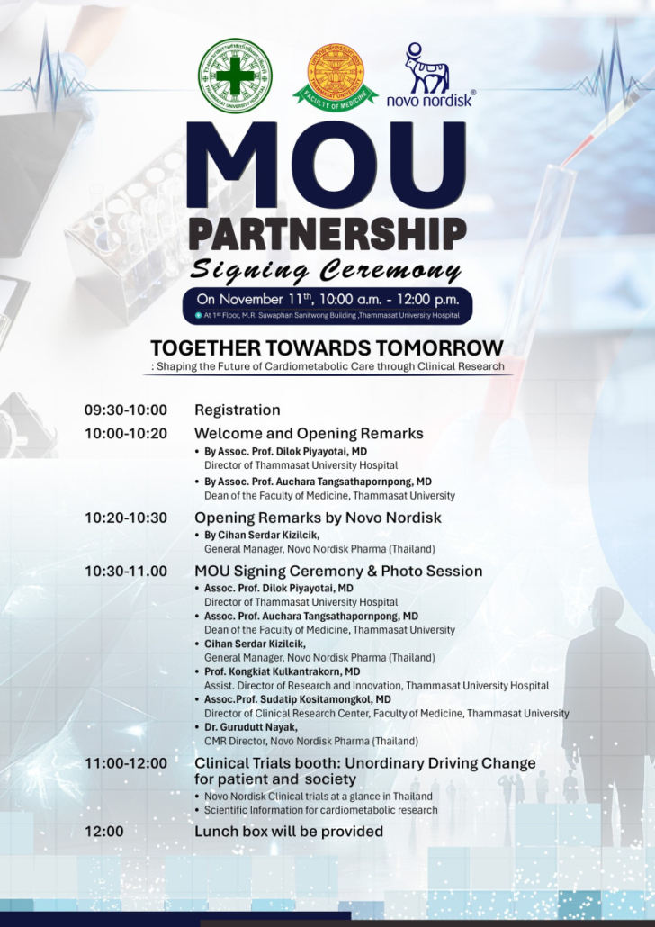 พิธีลงนามบันทึกข้อตกลงความร่วมมือ (MOU Partnership Signing Ceremony) . ในหัวข้อ: “TOGETHER TOWARDS TOMORROW : Shaping the Future of Cardiometabolic Care through Clinical Research”