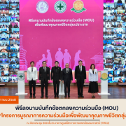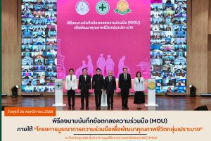 พิธีลงนามบันทึกข้อตกลงความร่วมมือ (MOU) ภายใต้ “โครงการบูรณาการความร่วมมือเพื่อพัฒนาคุณภาพชีวิตกลุ่มเปราะบาง” ระหว่างกระทรวงการพัฒนาสังคมและความมั่นคงของมนุษย์ โรงพยาบาลธรรมศาสตร์เฉลิมพระเกียรติ และคณะแพทยศาสตร์ มหาวิทยาลัยธรรมศาสตร์