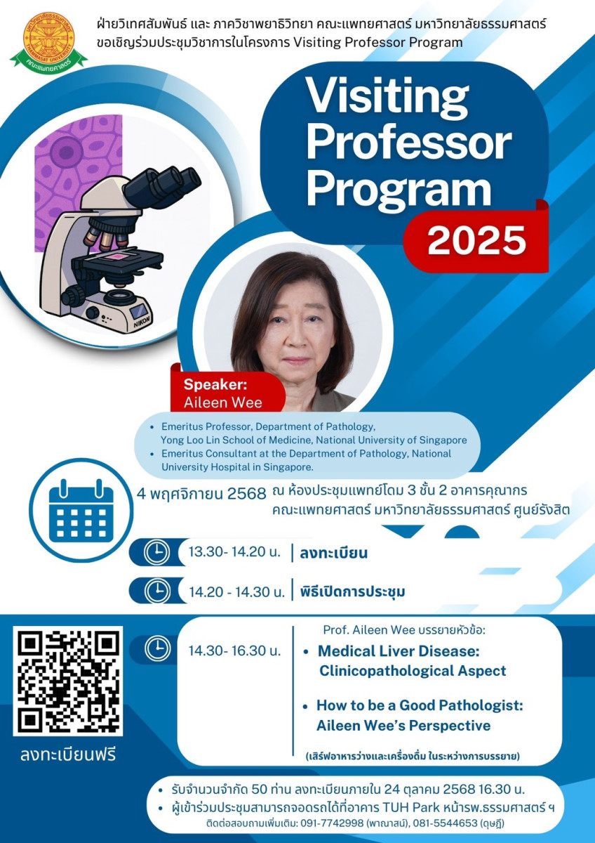 ขอเชิญเข้าร่วมประชุมวิชาการโครงการ “Pathology Thammasat Visiting Professor Program”