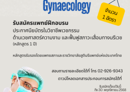รับสมัครแพทย์ฝึกอบรมประกาศนียบัตรในวิชาชีพเวชกรรม ด้านเวชศาสตร์ความงาม และฟื้นฟูสภาวะเสื่อมทางนรีเวช (หลักสูตร 1 ปี) จำนวน 1 อัตรา