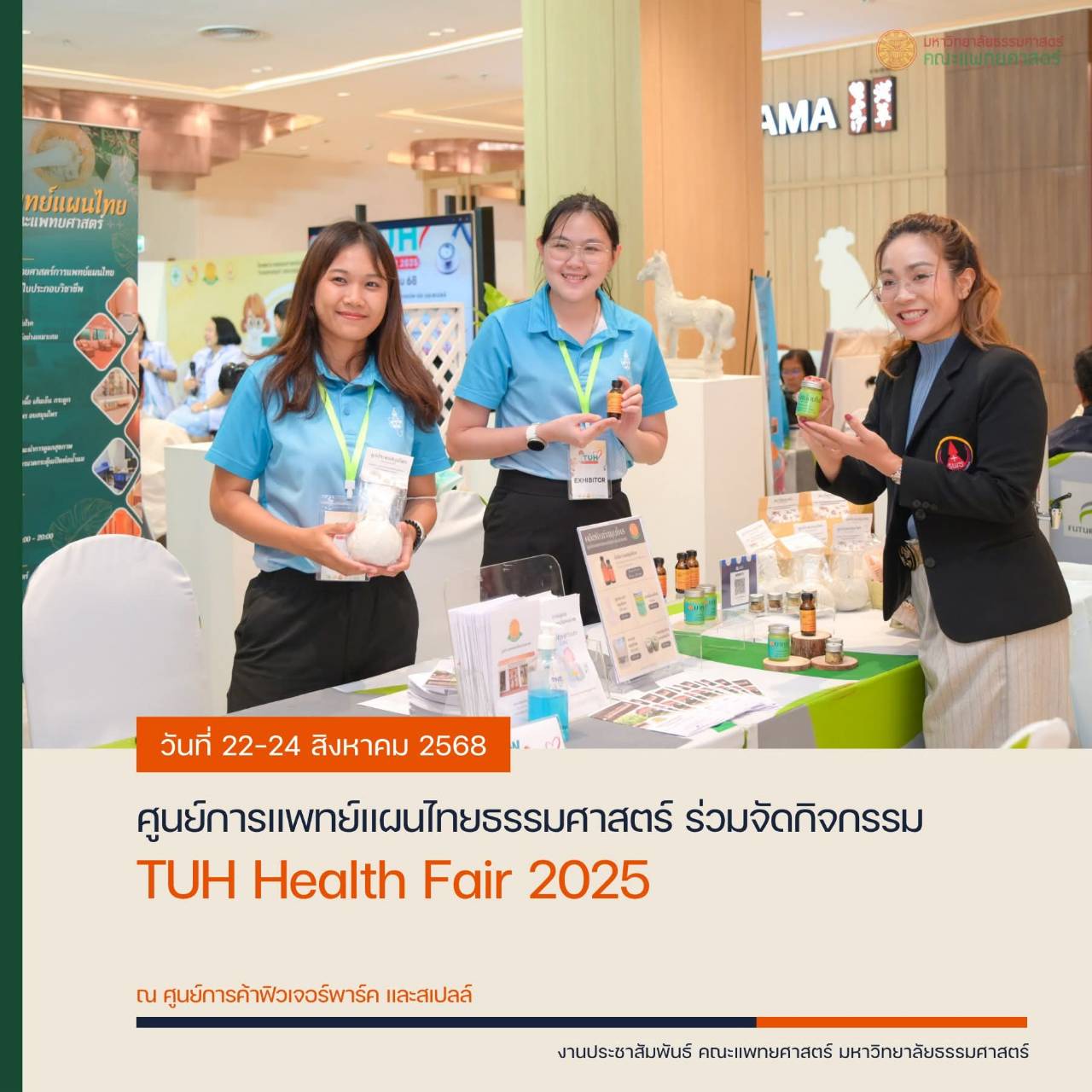 ศูนย์การแพทย์แผนไทยธรรมศาสตร์ คณะแพทยศาสตร์ มหาวิทยาลัยธรรมศาสตร์ ร่วมออกบูธให้บริการด้านสุขภาพ ภายในงาน TUH Health Fair 2025 ซึ่งจัดขึ้นระหว่างวันที่ 22 – 24 สิงหาคม 2568 ณ ศูนย์การค้าฟิวเจอร์พาร์ค และสเปลล์