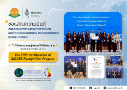 คณะแพทยศาสตร์ มหาวิทยาลัยธรรมศาสตร์ ขอแสดงความยินดีกับ คณะกรรมการจริยธรรมการวิจัยในคน มหาวิทยาลัยธรรมศาสตร์ สาขาแพทยศาสตร์ (HREC-TUMED)