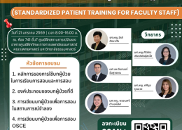 ขอเชิญเข้าร่วมโครงการอบรมเชิงปฏิบัติการ “การพัฒนาอาจารย์ผู้ฝึกสอนผู้ป่วยมาตรฐาน และการฝึกอบรมการเป็นผู้ป่วยมาตรฐาน (Standardized Patient Training for Faculty Staff)”