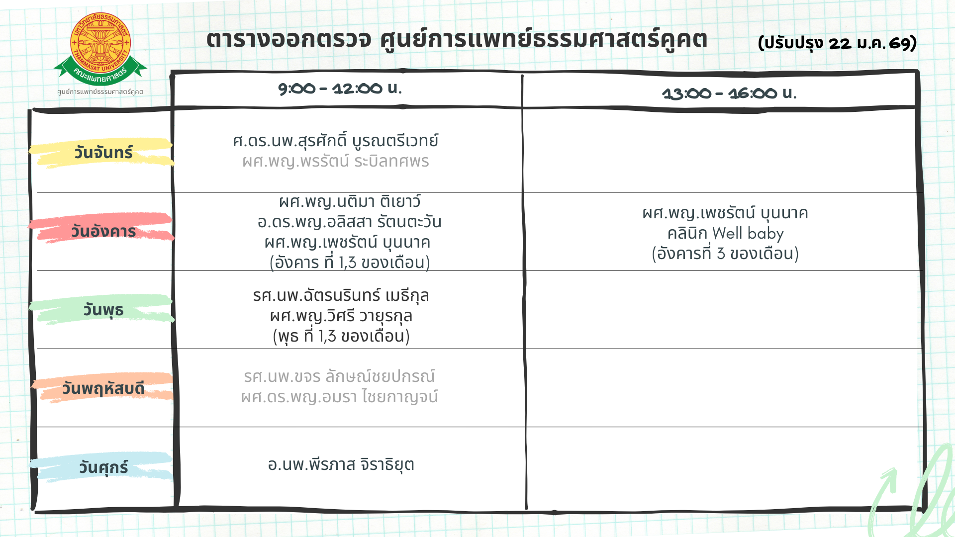 แพทย์ สังกัดโรงพยาบาลธรรมศาสตร์ฯ